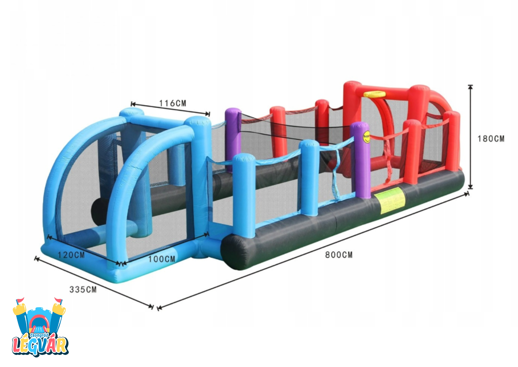 Foci, kosár és röplabda egyetlen biztonságos helyen. Ez a légvár garantálja a felhőtlen játékot anélkül, hogy aggódnod kellene a kerti virágok vagy a szomszéd ablak épsége miatt. Praktikus kialakításának köszönhetően a röplabdaháló igény szerint variálható.